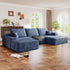 FFH 107" Cloud Sectional Sofa with Right Chaise, Cozy U-Shaped Modular Sofa with Ottoman, Plush Corduroy Sleeper Bed Couch, No Assembly Required, Blue